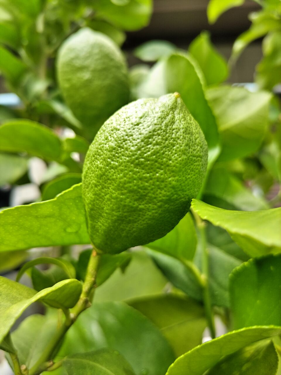 9月に一個収穫して食べてみましたところ、 レモン特有のフレッシュな匂いが強く、そして味は非常に酸っぱく、総合して今一だと感じました。 その後1か月たって表皮はわずかに黄みを帯びてきました。